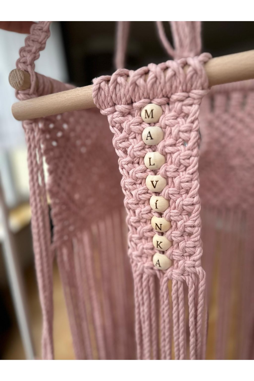 Možnost gravírovaných korálků, které jsou zapleteny do přední části houpačky.